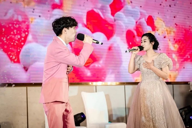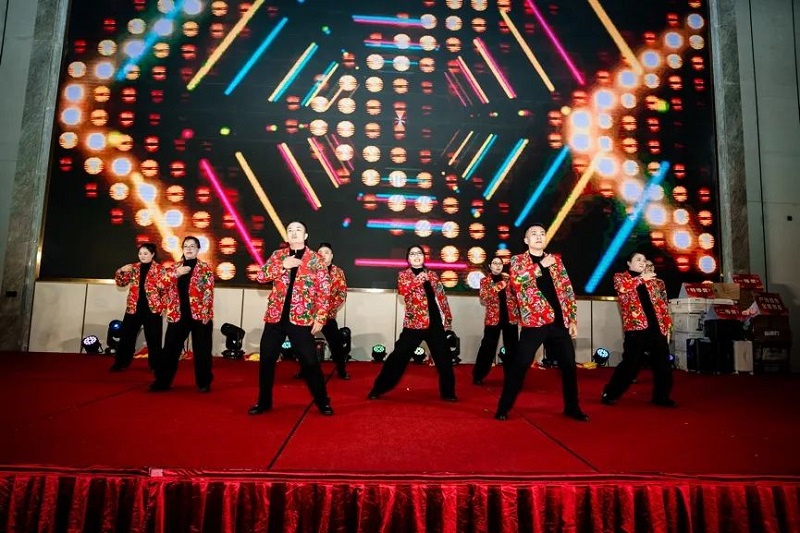 團(tuán)拜會(huì)由開山聯(lián)合公司徐濤主唱的開場秀拉開帷幕,絢麗的舞臺(tái)背景和熾烈的鼓樂聲讓現(xiàn)場充滿了歡樂祥和的喜慶氣氛。