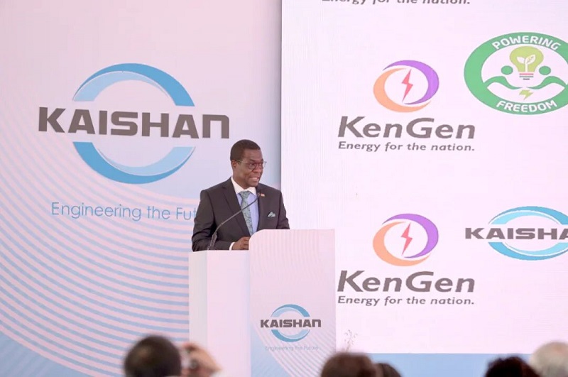 湯炎博士也在儀式上講話。他強(qiáng)調(diào)指出:我們已經(jīng)為肯尼亞綠色工業(yè)化完成了兩個(gè)地?zé)犭姀S,開山Olkaria 地?zé)犭姀S和綠色化肥廠是開山在肯尼亞的下一個(gè)里程碑,是開山在清潔能源發(fā)展征程上又一個(gè)新的篇章。我們要使用肯尼亞能源公司的地?zé)嵴羝a(chǎn)165 MW清潔電能,并用這一清潔電能制氫、生產(chǎn)綠氨,最終生產(chǎn)出超過48萬噸的綠色化肥。特別需要特別指出的是,開山Olkaria 地?zé)犭姀S是世界上第一座零排放的地?zé)犭姀S。地?zé)嵴羝械?/span>不凝性氣體將被完全回收生產(chǎn)CO2,并送往綠色化肥廠作為生產(chǎn)尿素的原料。我們?cè)趧?chuàng)造歷史,零排放地?zé)岚l(fā)電廠的歷史,綠色化肥生產(chǎn)的歷史,非洲綠色工業(yè)化的歷史,并將激勵(lì)全球綠色能源和綠色工業(yè)化的發(fā)展。